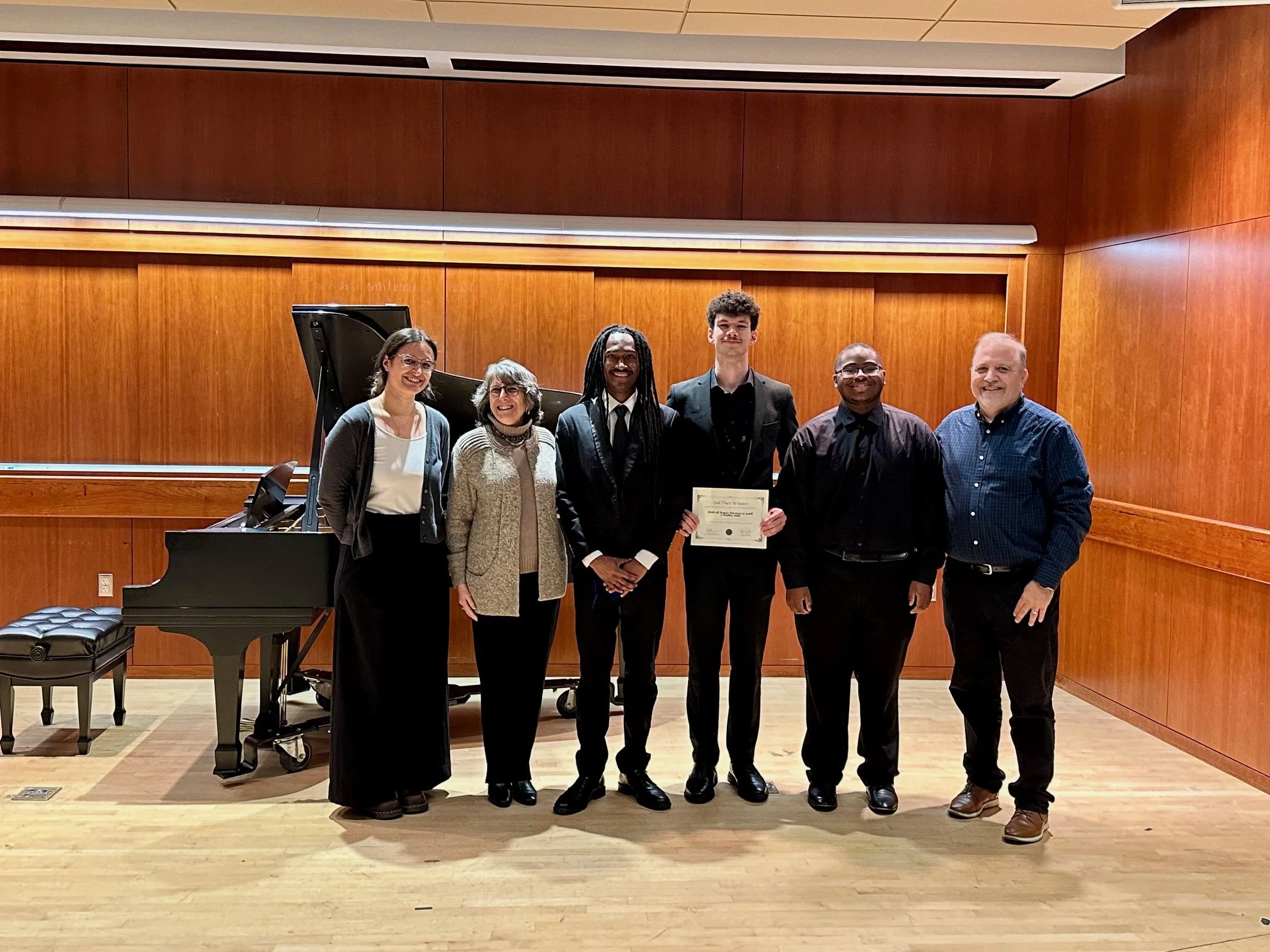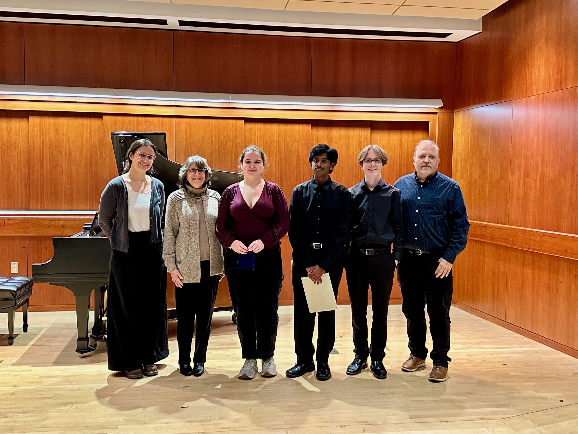 Left to Right: Robert DiLutis - Host and UMD Professor of Clarinet, Annie Gruman from University of Maryland, Natalie DeSimone from University of Louisville (2nd Place), Darian Angel from Shenandoah Conservatory (1st Place), Hong Cheng from Rutgers University (3rd Place), Elias Gilbert from Peabody Conservatory